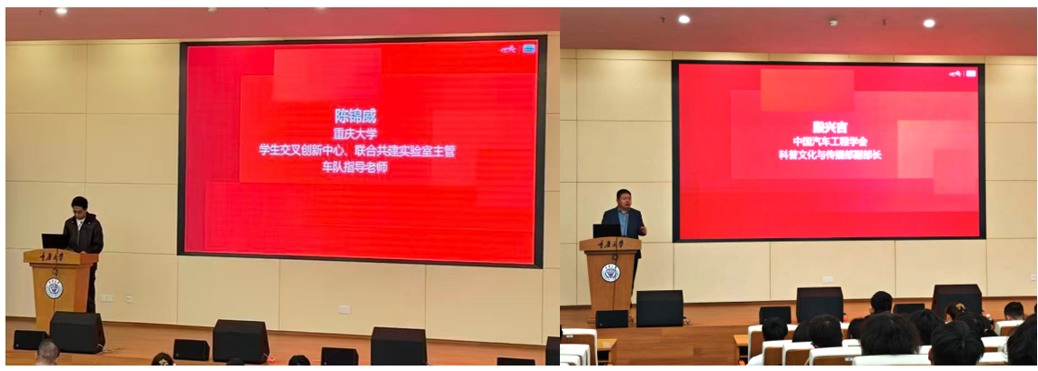 重庆大学学生交叉创新中心、联合共建实验室主管、车队指导教师陈锦威为培训致开幕辞,陈老师首先向参会师生表示热烈欢迎,并指出中国大学生方程式赛事已发展为汽车工业的“青年练兵场”,与新工科人才培养理念高度契合。重庆大学作为“双一流”高校,依托学生交叉创新中心构建了产学研一体化育人体系,重庆大学方程式赛车队便是这一模式的生动缩影。他鼓励同学们传承重庆敢闯敢试的城市精神,跨专业协作、勇于创新,成长为支撑产业高质量发展的中坚力量,并预祝培训圆满成功。