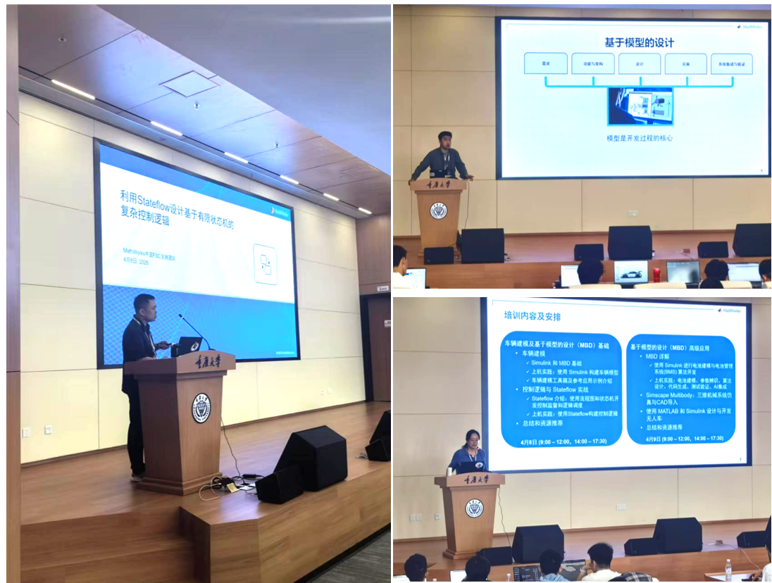 MathWorks高校教育团队工程师常江、王家琛、汪丽萍围绕MATLAB、Simulink、Stateflow及MBD基础展开教学,引导学员运用Simulink完成车辆建模、电池参数辨识、算法设计与代码生成。并为车队后续学习设计提供资源推荐。