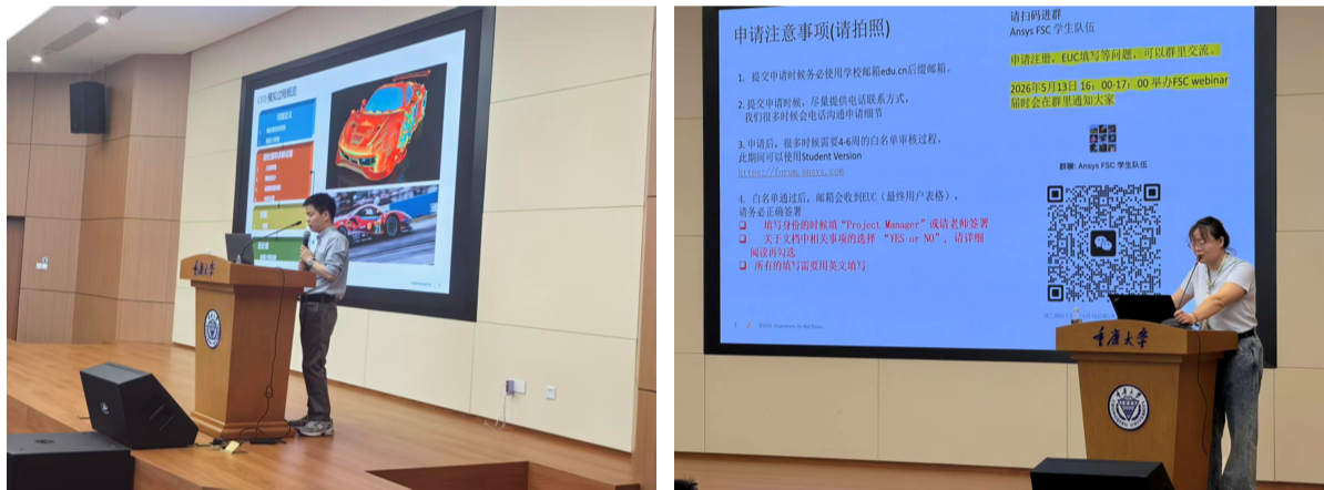 为进一步提升参赛车队的CAE技术水平,促进车队间的技术交流与学习,赛事组委会于2026年4月8-9日在重庆大学(科学城校区)举办2026中国大学生方程式系列赛事CAE培训。中国汽车工程学会科普文化与传播部副部长殷兴吉;重庆大学学生交叉创新中心、联合共建实验室主管、车队指导教师陈锦威;车队指导教师康哲;MathWorks 高校教育团队工程师常江、王家琛、汪丽萍;ANSYS技术经理郑丽堃、高级应用工程师胡日新;VI-grade结构工程师邓贤亮及全国各车队156名队员参加了本次培训。
